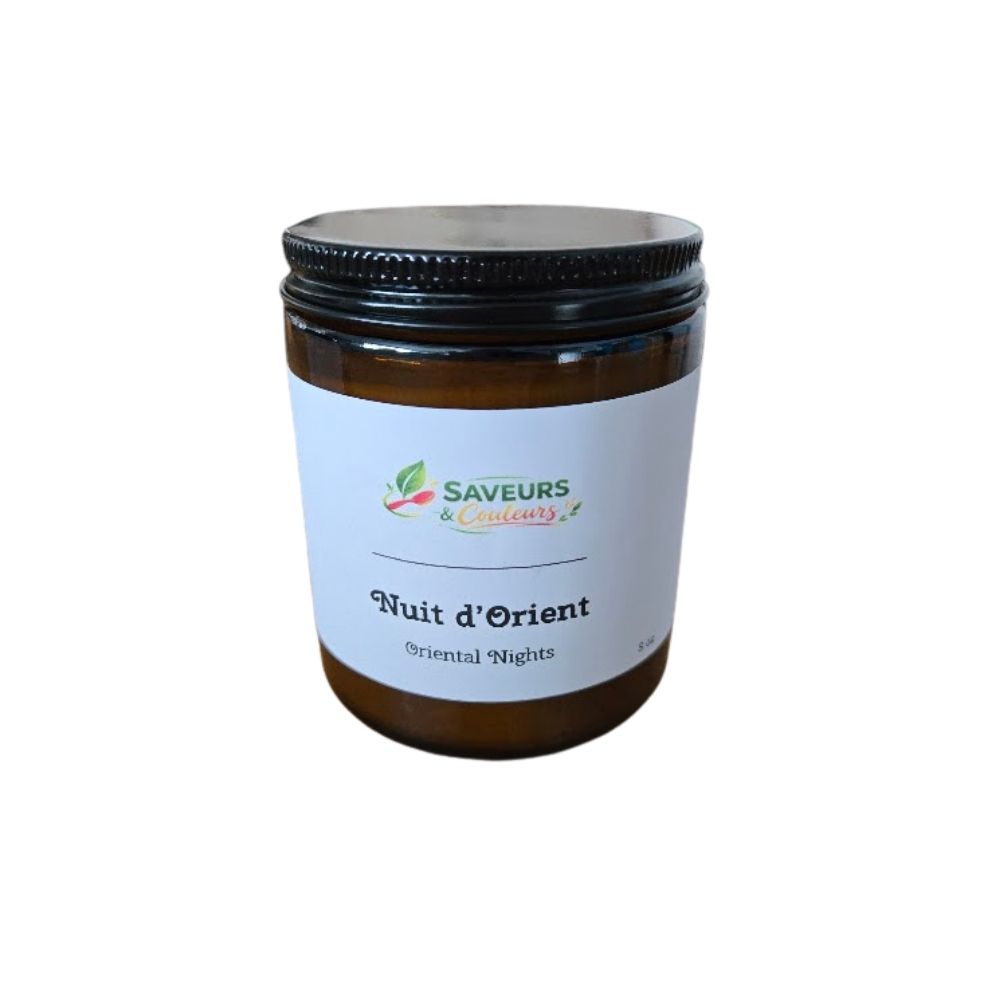 Sumérgete en un ambiente cálido y cautivador con nuestra vela de cera de soja, presentada en un elegante tarro ámbar. Su fragancia rica y cautivadora transforma tu espacio en un lugar relajante, inspirado en las noches orientales.